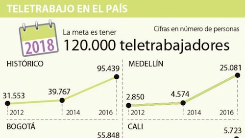 Para el 2018 la meta del Gobierno es llegar a 120.000 tele trabajadores en el país gracias a la implementación de diferentes estrategias que permitan impulsar esta alternativa en las empresas.